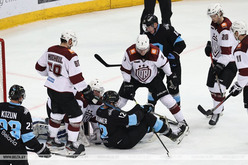 После перерыва "зубры" продолжили атаковать ворота рижской дружины, которая достойно держала удар. Однако на 29-й минуте минчанам все же удалось открыть счет: когда команды играли в формате "4 на 4", Бреннан Менелл смог забросить шайбу. Впрочем, на этом голевые ситуации у ворот рижан не закончились. Спустя 4 минуты Егор Шарангович удвоил преимущество команды, забросив свою четвертую шайбу в четырех последних матчах чемпионата КХЛ.
