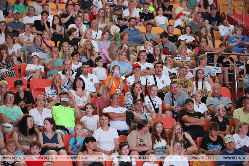Разместиться в зале зрителям помогают волонтеры. В Орше в дни II Игр стран СНГ их работает полсотни, некоторые со знанием английского языка, чтобы при необходимости сориентировать гостей, которые не говорят на русском.