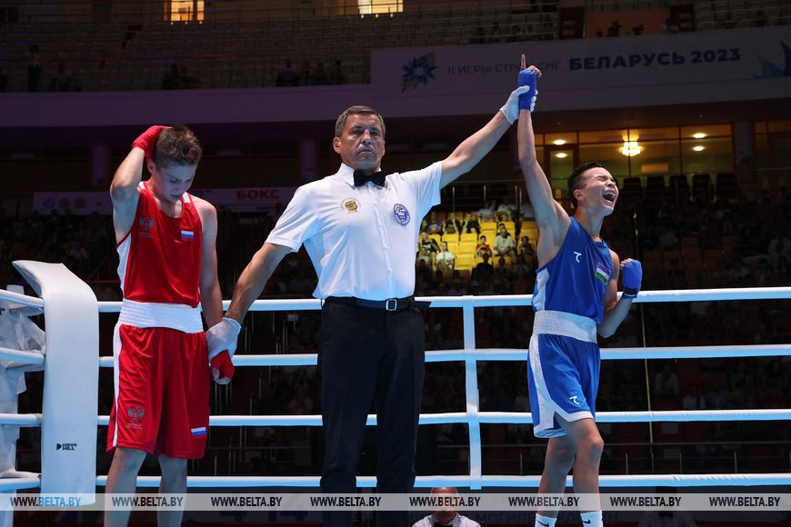 6 августа, Орша /Корр. БЕЛТА/. В Ледовой арене Орши стартовала первая дневная сессия на соревнованиях по боксу II Игр стран СНГ, передает корреспондент БЕЛТА.