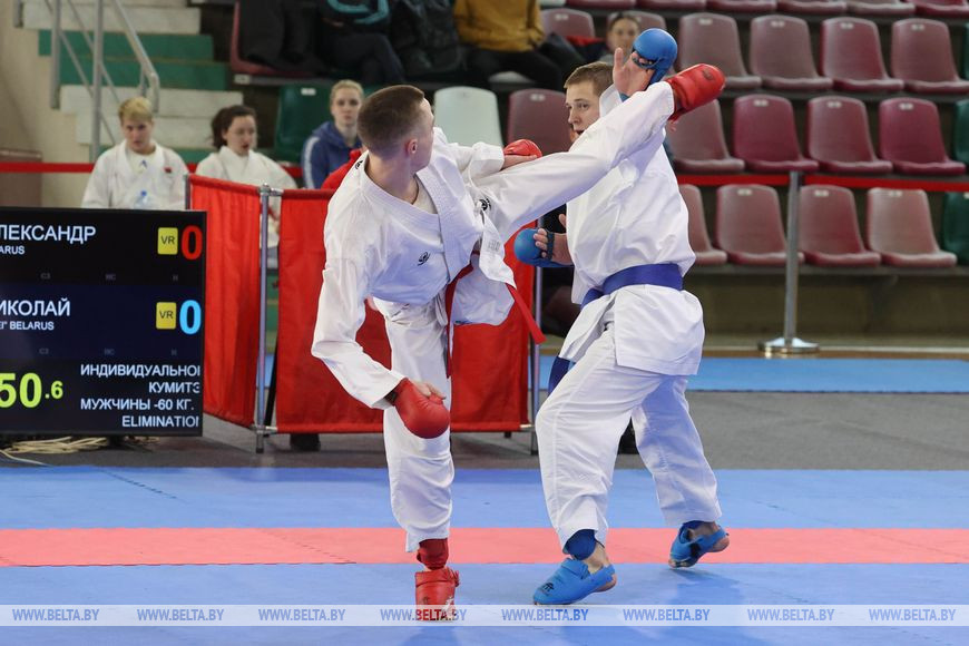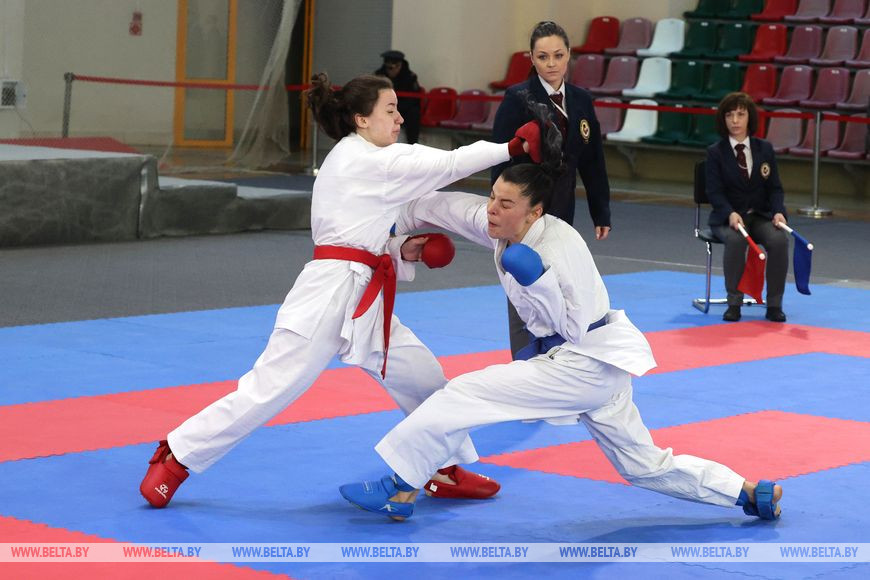 В первый соревновательный день на татами спортивного комплекса стартовало первенство Беларуси по карате среди кадетов, юниров и молодежи. Сегодня, во второй день, проходит чемпионат Беларуси по карате среди взрослых. "На два чемпионата количество участников составляет приблизительно 350 человек. Вчера был очень напряженный день для нашей молодежи. Это был важный турнир для ребят, ведь по результатам будет проводиться отбор в сборные и национальные команды. Престижно стать первым на таких состязаниях, потому что дает возможность потом выезжать на международные старты, - рассказал главный судья соревнований Александр Краевич. - Продолжает соревнования чемпионат Беларуси по карате среди взрослых, который тоже является одним из важных чемпионатов для национальной команды. Здесь ребята борются за звание сильнейшего в стране".
