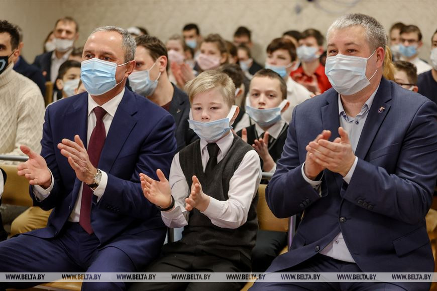 "Очень приятно поздравить вас всех с Новым годом и Рождеством. Желаем исполнения всех желаний, здоровья. Дорогие дети, занимайтесь, пожалуйста, спортом, творчеством. Цените добро и те знания, которые дарят вам преподаватели. Будьте умными, образованными и добрыми. Вы - наше будущее", - сказал в приветственном слове заместитель председателя центрального совета РГОО "Президентский спортивный клуб" Андрей Карпович.