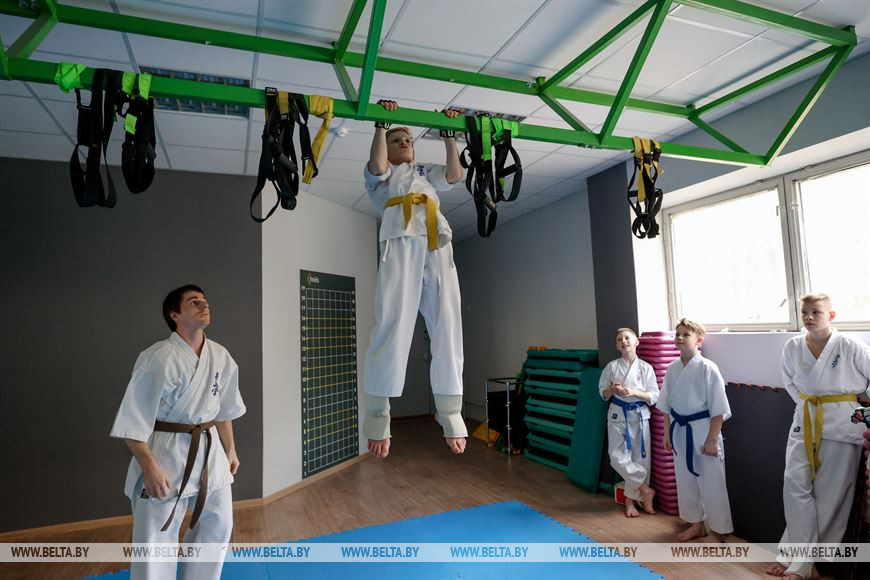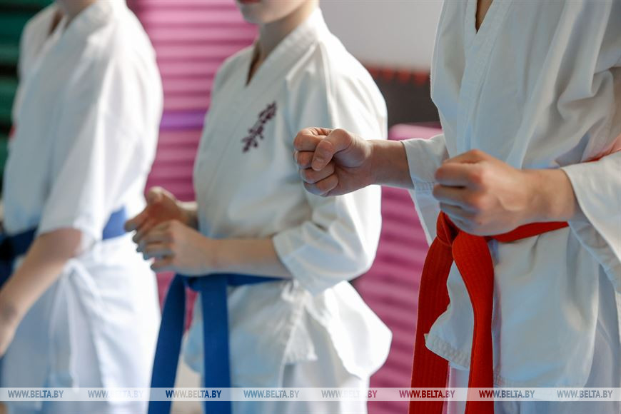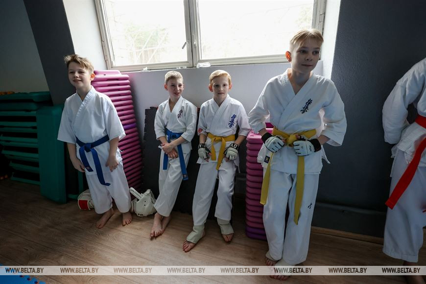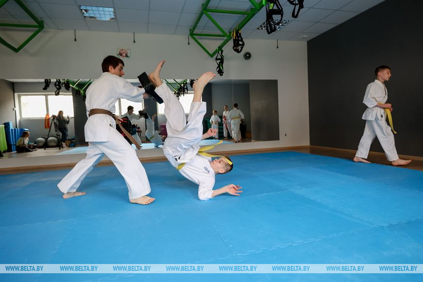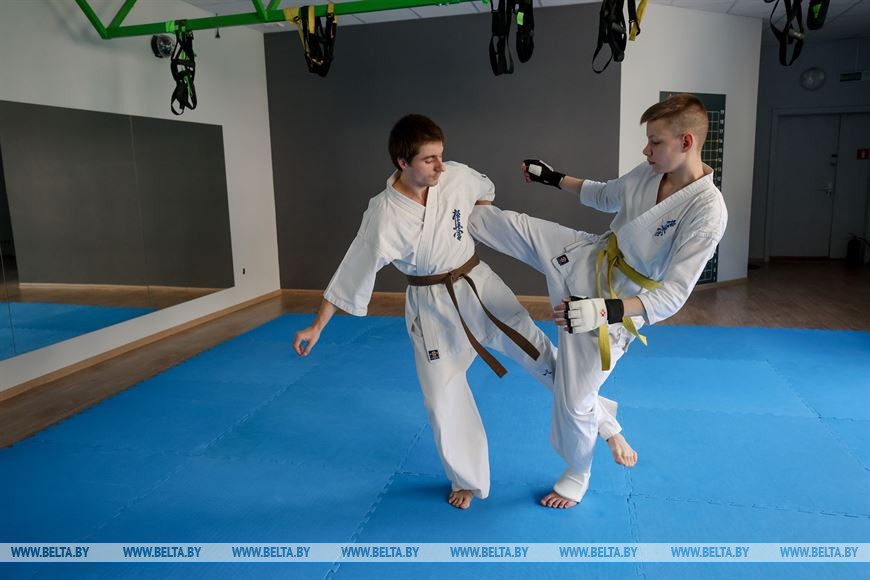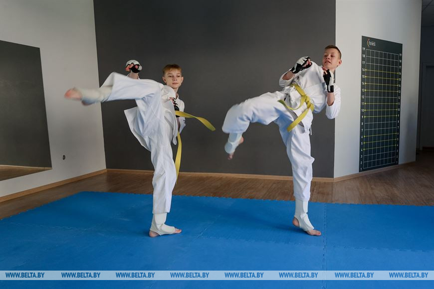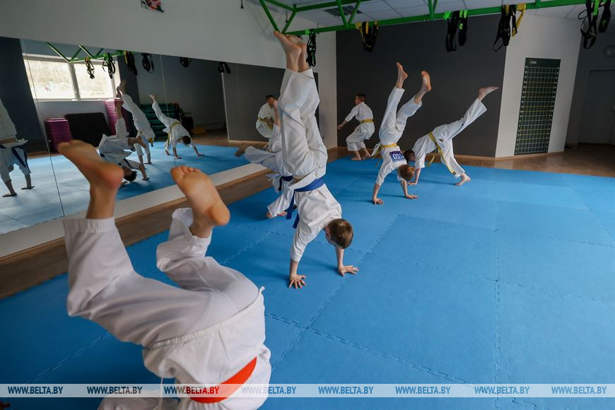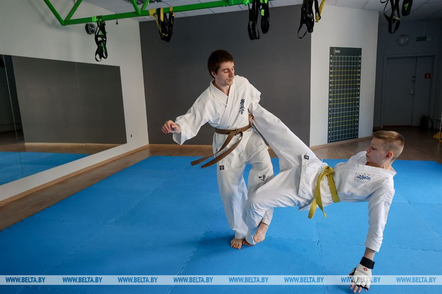 "Это один из самых зрелищных ударных видов спорта, очень популярный. Это работа над собственным телом, хороший способ самообороны и единственный, наверное, вид спорта, из которого уходят в другие виды - ММА, кикбоксинг - и становятся чемпионами. Наоборот - нет. Потому что это очень серьезная, колоссальная база", - перечисляет достоинства выбранного "будо" (пути) Олег Давидовский, тренер-преподаватель школы карате "Кайман". На его занятие в зале фитнес-клуба в Соснах с подрастающими чемпионами корреспонденты БЕЛТА приехали по следам успешного выступления учеников школы на недавнем чемпионате Беларуси.