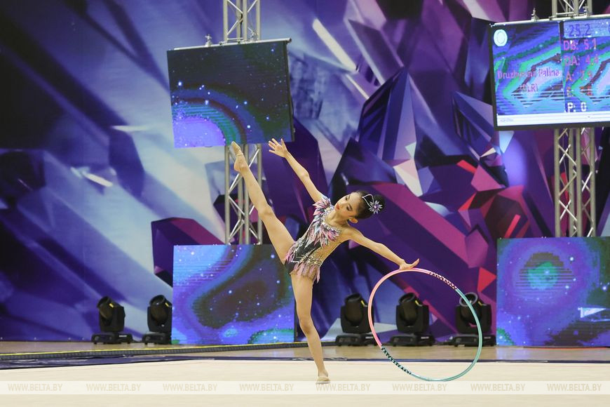 Белорусская звездочка Вера Ларичкова выполняла упражнения с мячом. Гимнастка очень рада, что стала участницей турнира. "Шанс попасть сюда - один на миллион. Нужно быть очень старательной, чтобы попасть на турнир. Я готовилась два месяца, у нас были три контрольные тренировки, все из них я прошла. На последней контрольной у меня была небольшая неудача, но я собрала силы в кулак и выступила. Сегодняшним выступлением в целом довольна. Настраиваюсь на завтрашний выход без предмета", - рассказала юная грация.