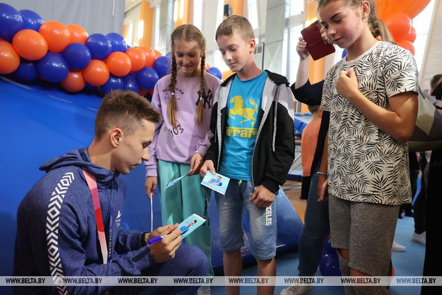 Заслуженному тренеру и ее олимпийским подопечным в Витебске вручили памятные подарки и почетные грамоты горисполкома, а новая смена спортсменов поздравила старших товарищей, с которыми тренируется в одном зале. Теперь у юных батутистов есть свои легенды и кумиры, которых можно увидеть лично и дотянуться до них рукой.-0-