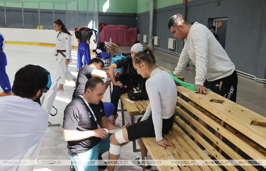 Команды дзюдоистов из девяти стран с самого утра приступили к финальным тренировкам в Ледовом дворце Гомеля. Этот объект спортивной инфраструктуры претерпел определенные метаморфозы. Так, место льда на двух аренах заняли татами. Специально обустроена комфортная инфраструктура для участников Игр: помещения контроля кимоно, залы для разминки, медпункт, комфортный трансфер и понятная логистика, а главное - режим.