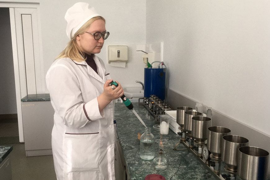 - Проверяем соответствие нормативам, определяя количество мезофильных аэробных микроорганизмов, - рассказывает Юлия Саковец. - Их должно быть не более 100 в 100 миллилитрах напитка.