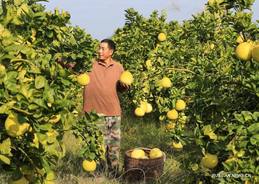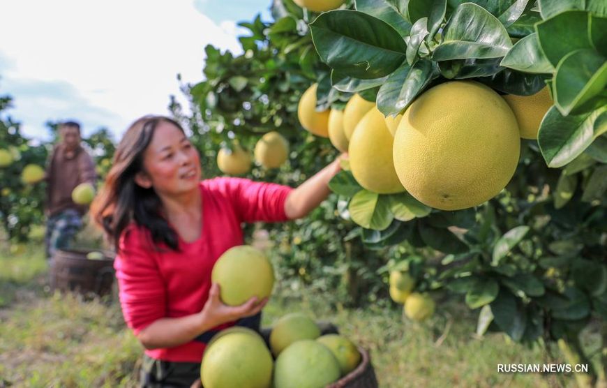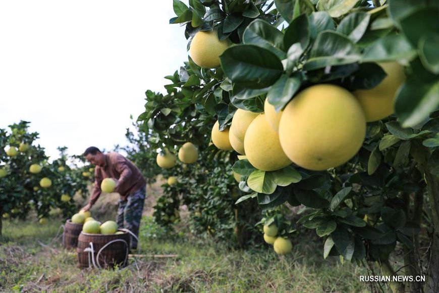 26 октября, Гуйчжоу /БЕЛТА - СИНЬХУА/. С приходом осени в провинции Гуйчжоу на юго-западе Китая наступила пора сбора урожая помело.-0-