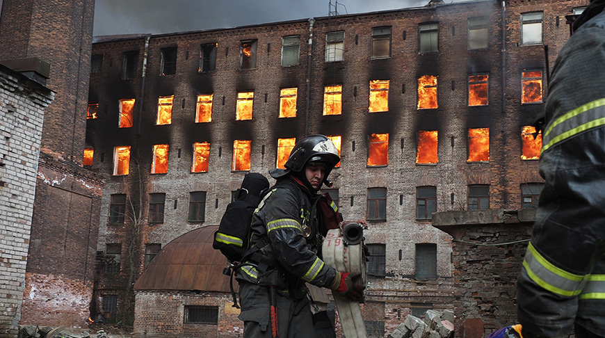 Крупный пожар произошел сегодня в здании Невской мануфактуры в Санкт-Петербурге. При тушении огня погиб один пожарный, еще двое получили ожоги и госпитализированы.-0-
