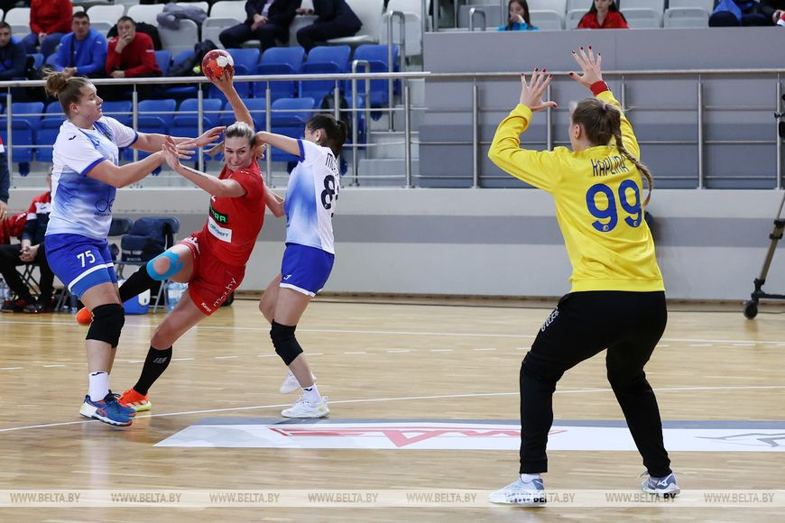 Сегодня на площадке спорткомплекса "Уручье" подопечные Александра Сытько потерпели поражение с результатом 26:35 (12:21). Самой результативной в составе хозяек стала Анастасия Кулак, забросившая семь мячей. У победительниц отличились Антонина Скоробогатченко и Кристина Кожокарь, которые по пять раз поразили ворота белорусской команды.