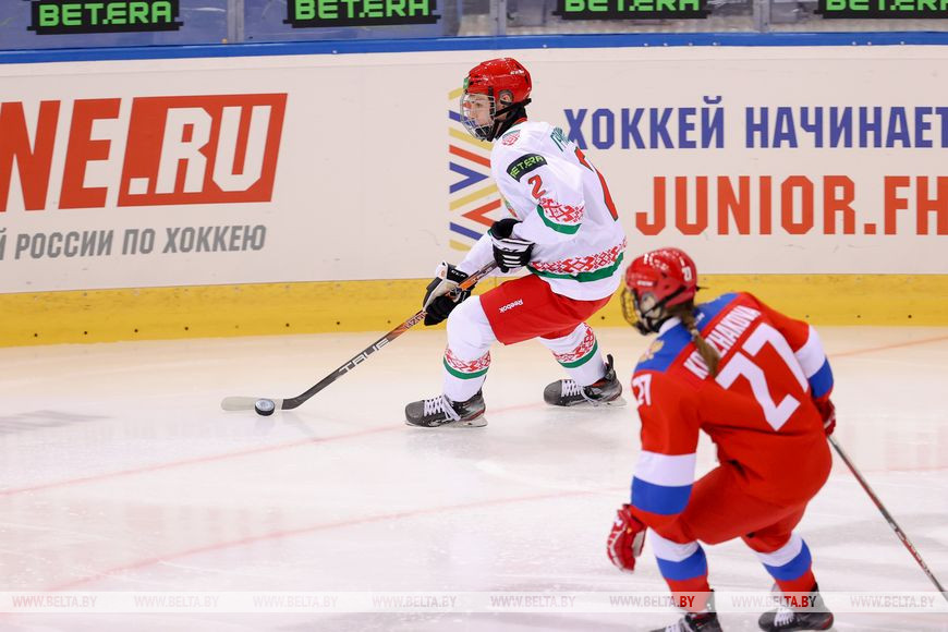 В пятничном поединке наша юниорская сборная обыграла женскую команду России, результаты матчей против которой не учитываются в общей таблице. После 40 минут игры белорусы были впереди всего на одну шайбу - в начале второго периода счет открыл Иван Гайдукевич. Самой результативной оказалась заключительная треть: Гайдукевич оформил дубль, также чужие ворота поразили Дмитрий Хобян и Кирилл Гришков. Россиянки же сумели ответить только однажды, в итоге 4:1 в пользу белорусов. Эта победа стала для наших ребят второй в двух матчах, накануне подопечные Дмитрия Шульги одолели казахстанских сверстников - 4:2.
