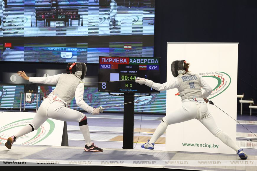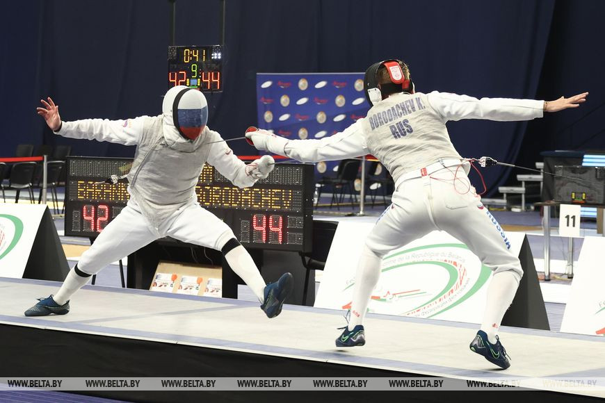 19 июня, Минск /Корр. БЕЛТА/. В минском Дворце спорта продолжается открытый чемпионат Союзного государства по фехтованию. Сегодня прошли соревнования на рапире среди мужчин и женщин, а также командные соревнования.-0-