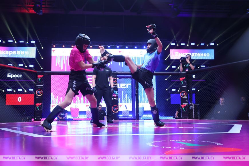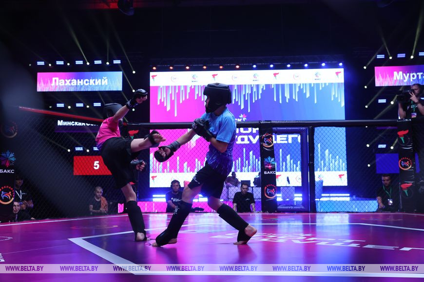 23 сентября, Минск /Корр. БЕЛТА/. Открытый республиканский командный турнир "Игры будущего" проходит в Минске. Соревнования проходят в новом формате, одновременно включая в себя спортивную часть (панкратион) и фиджитал часть (Mortal kombat).-0-