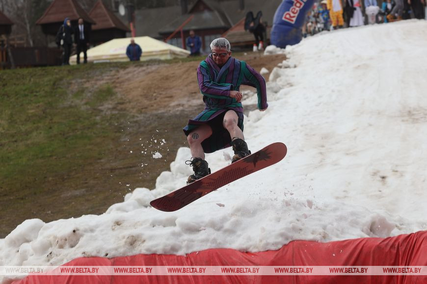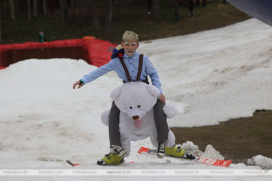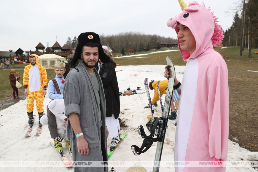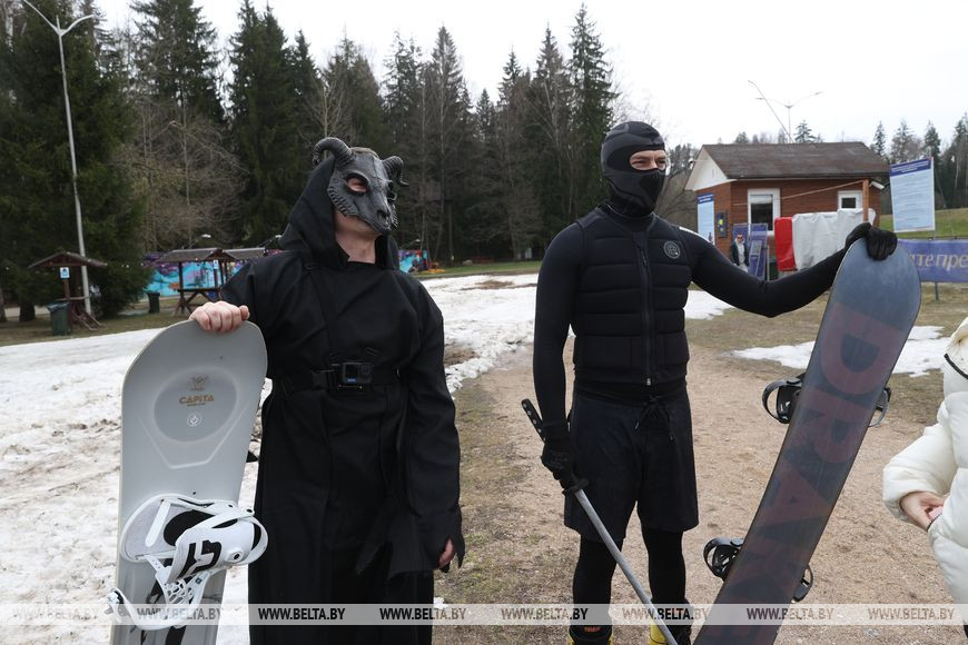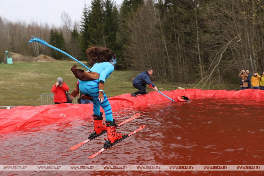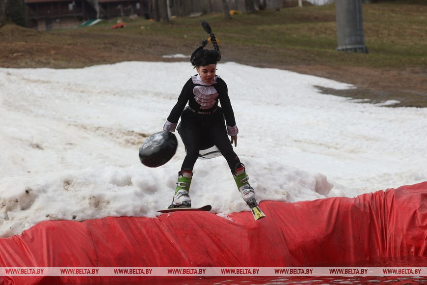 15 апреля, Минск /Корр. БЕЛТА/. В горнолыжном спортивно-оздоровительном комплексе "Логойск" состоялось закрытие горнолыжного сезона. По традиции участники праздника в карнавальных костюмах спускались на лыжах и сноубордах с горы в бассейн с водой. Жюри оценивало костюм, артистичность и вход в воду.-0-