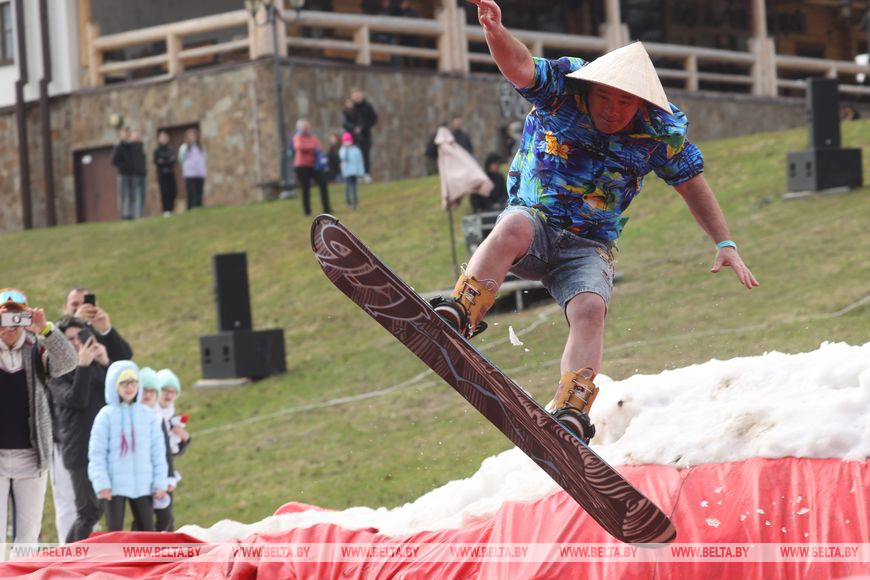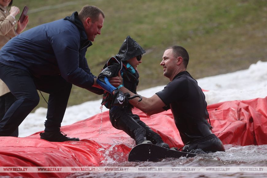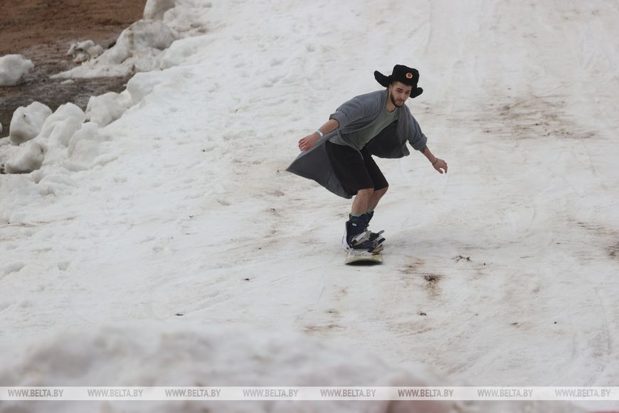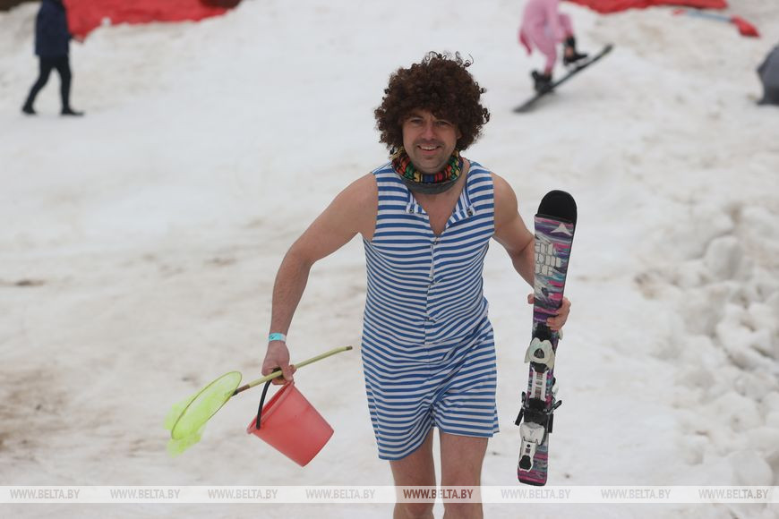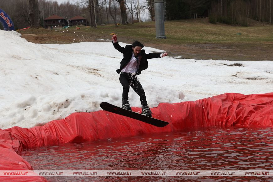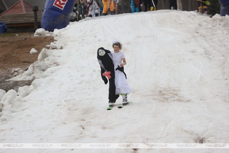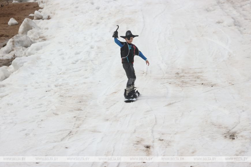 15 апреля, Минск /Корр. БЕЛТА/. В горнолыжном спортивно-оздоровительном комплексе "Логойск" состоялось закрытие горнолыжного сезона. По традиции участники праздника в карнавальных костюмах спускались на лыжах и сноубордах с горы в бассейн с водой. Жюри оценивало костюм, артистичность и вход в воду.-0-