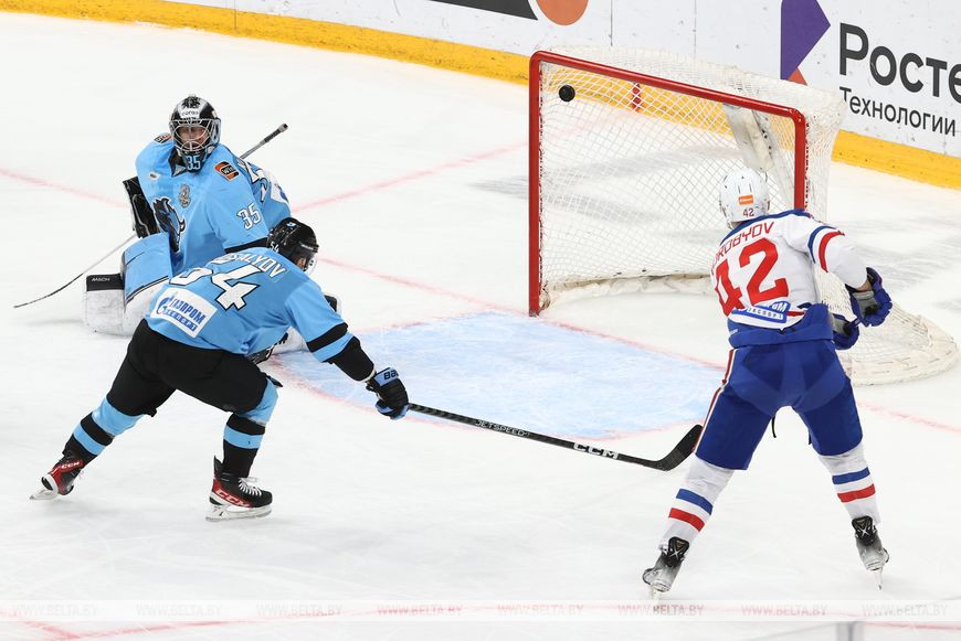 Во втором периоде "зубры" восстановили равновесие, снова отличившись при игре вчетвером против пятерки соперника. На сей раз цель поразил Сергей Сапего. Однако ответ петербуржцев опять не заставил себя долго ждать: вторую шайбу "Динамо" и третий гол СКА разделила всего минута. По ходу отрезка "армейцы" создали еще пару опаснейших моментов, но оба раза Алексея Колосова выручила штанга.