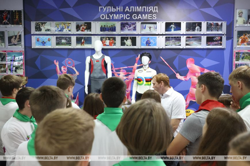 "Мы решили пригласить вас в НОК, чтобы вы смогли не только сделать фотографию на память, но и приобщиться к спорту. В Орше вы имели возможность увидеть, что такое олимпийское движение, что такое спорт высоких достижений. Здесь вы почерпнули информацию о самых значимых спортивных событиях нашей страны. В Зале олимпийской славы вы видите портреты наших заслуженных олимпийцев. Я думаю, атмосфера этого Зала должна подействовать на вас. Быть может, тот, кто уже посещает спортивные секции, убедился еще раз, что поступает правильно, а кто еще не записался, смог проникнуться спортивным духом в нашем храме спорта", - обратился к ребятам Виктор Лукашенко.