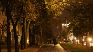 Дождливый осенний вечер в Минске создает уютную атмосферу, в свете фонарей выглядит особенно чарующе.