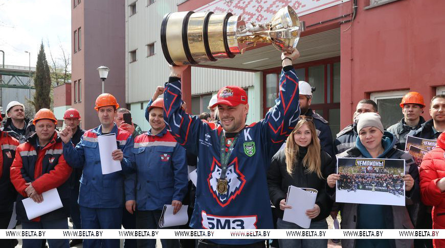 28 апреля, Жлобин /Корр. БЕЛТА/. Хоккейная команда "Металлург", которая в пятый раз завоевала Кубок Президента, встретилась 28 апреля с работниками Белорусского металлургического завода (БМЗ), болельщиками города, передает корреспондент БЕЛТА.