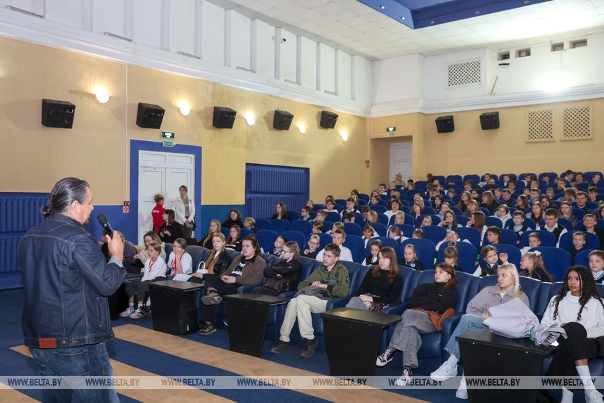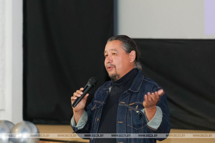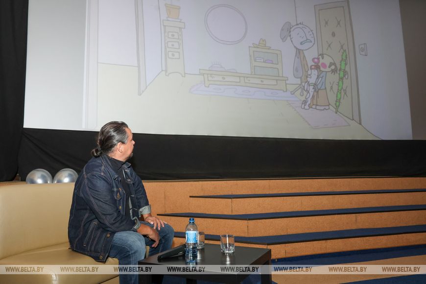 25 сентября, Могилев /Корр. БЕЛТА/. В кинотеатре "Космос" в Могилеве в рамках XXVIII Международного фестиваля анимационных фильмов "Анимаевка-2025" 25 сентября прошла творческая встреча с российским режиссером-аниматором, художником-постановщиком, заслуженным работником культуры Башкортостана Римом Шарафутдиновым.-0-