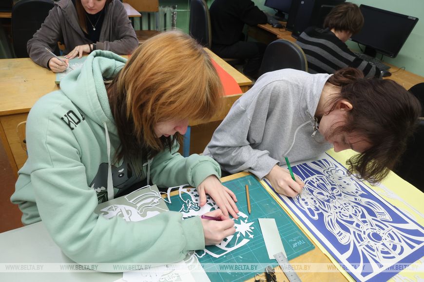 Сейчас в колледже вытинанкой занимается около 90 студентов разных курсов. Занятия проходят в виде творческого кружка. Ребята сами разрабатывают эскизы и вырезают композиции, отказываясь от плагиата в пользу авторского подхода.