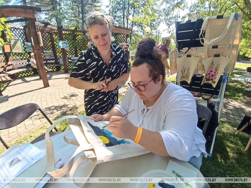 Гости праздника воспользовались шансом не только посмотреть яркое шоу, вкусить на свежем воздухе разных яств, но и обучиться некоторым творческим занятиям. Лариса Шахнович из Минска приглашала на роспись по ткани. Гости праздника могли научиться наносить рисунки на льняные шоперы, которые мастер шьет сама. Кстати, ее ноу-хау в этом изделии - внутренний карман для ключей и прочей мелочи. По отзывам учеников, проходящих экспресс-курс по этому виду ремесла, процесс создания своего шопера очень увлекательный и радует результатом - эксклюзивной вещицей и массой впечатлений.