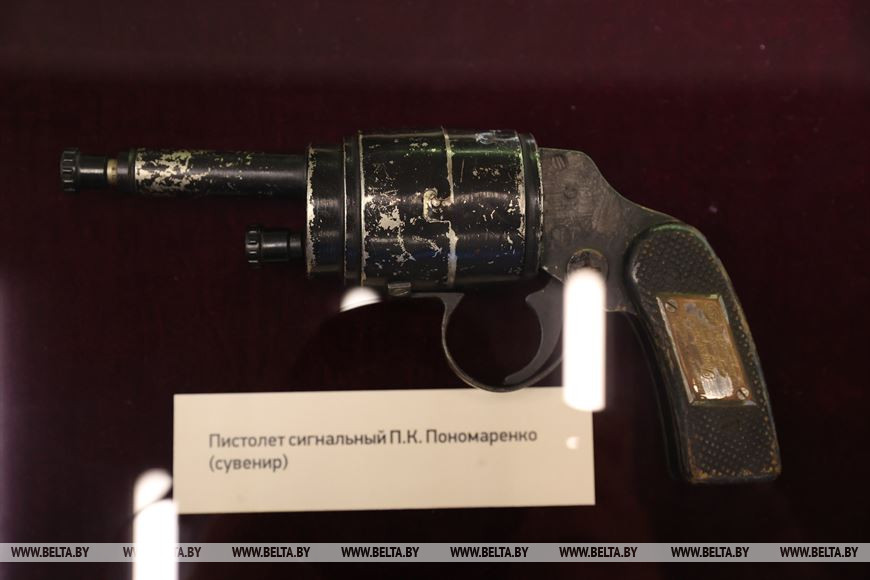 В экспозиции демонстрируются портреты героев, плакаты с информацией о них, фотографии и документы, рассказывающие о жизни и деятельности партизанских руководителей до, во время и после войны. "Все экспонаты - из фондов нашего музея. Из личных вещей лидеров партизанского движения представляем такие уникальные экспонаты, как бумажник, портсигар, полевую сумку, грамоты, депутатские билеты, ремень, рубашку и даже сигнальный пистолет", - отметила Наталья Яцкевич.