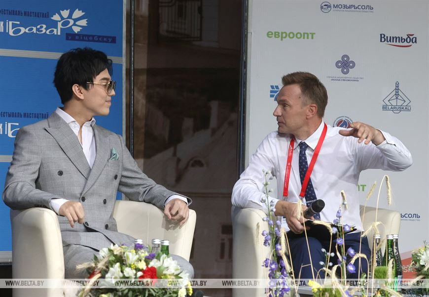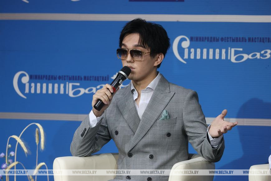 15 июля, Витебск /Алеся Пушнякова - БЕЛТА/. Димаш Кудайберген мечтает дать сольный концерт на одной из самых престижных сценических площадок мира - на стадионе "Уэмбли" в Лондоне. Об этом артист сообщил на пресс-конференции, отвечая на вопрос корреспондента БЕЛТА.