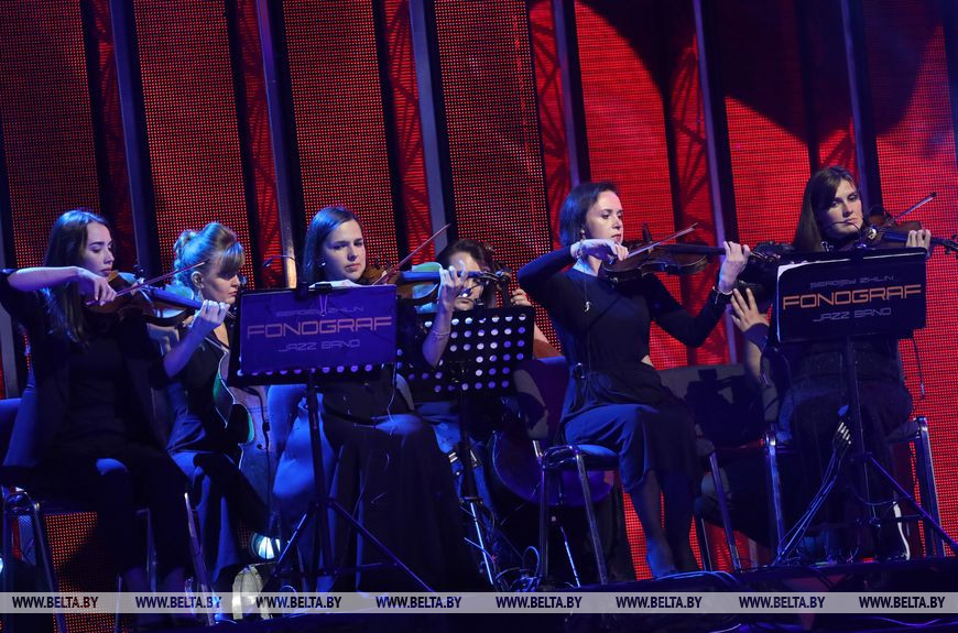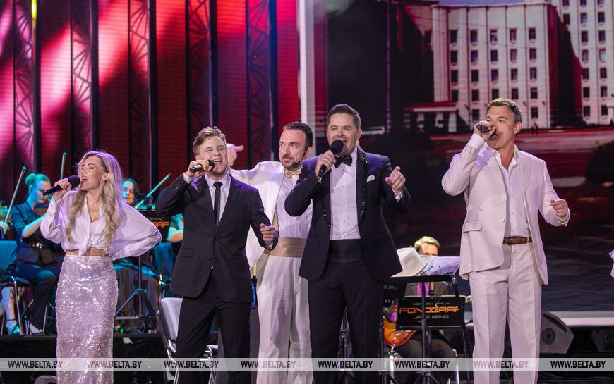 После официальной церемонии в Летнем амфитеатре стартовал концерт "Союзное государство приглашает…" с участием звезд кино, телевидения и театра. Вечер прошел под аккомпанемент оркестра "Фонограф-Симфо-Джаз". Народный артист России Сергей Жилин вышел на сцену один и рассказал, что коллектив целый день репетировал. "За два часа до концерта объявили перерыв, чтобы музыканты могли хотя бы немного познакомиться с вашим замечательным Витебском. Но еще не все вернулись, поэтому какое-то время придется побыть в таком составе", - пошутил Сергей Жилин и исполнил музыкальную партию соло. Через пару минут свои места заняли все участники оркестра.