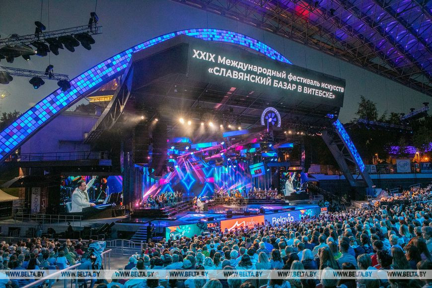 Перед началом концерта государственный секретарь Союзного государства Григорий Рапота пожелал зрителям получить яркие и незабываемые эмоции. "Тем, кто не смог приехать в Витебск, советую не огорчаться и запланировать поездку на следующий год. Встреча будет долгожданной, и от этого не менее радостной", - отметил он.