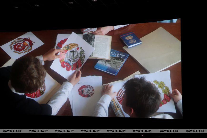 Режиссер фильма "Государственный герб Республики Беларусь" Евгений Шлеменков отметил, что изначально сценарий носил более документальный характер, но вместе с Министерством культуры они решили сделать его более понятным и доступным для детской аудитории. "Честно, я посмотрел все фильмы про государственные символы других стран, но нигде не видел такого формата. Из документалистики это превратилось в игровое кино с элементами документалистики, которые у нас подчеркивают архивы и спикеры", - пояснил Евгений Шлеменков.