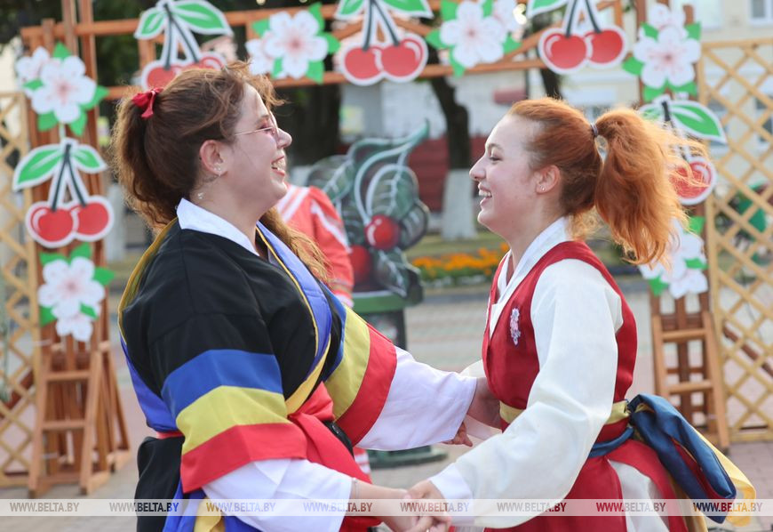 Каждый из участников этно-вечеринки представил свои культурные традиции. Китайские студенты из Витебского государственного университета имени П.М. Машерова исполнили традиционные песни, продекламировали стихи. В переводе тонкая китайская поэзия не нуждалась, ведь каждый слушатель понимал ее сердцем. О ягодном фестивале молодые люди узнали в своей альма-матер и охотно откликнулись на предложение поучаствовать в празднике. Глубокое им очень понравилось. А еще у них была одна важная миссия - попробовать селекционную местную вишню, ведь на их родине эта ягода совсем другого вкуса.
