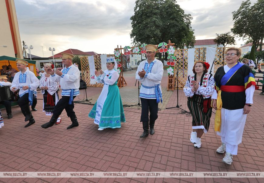 21 июля, Глубокое /Алеся Пушнякова - БЕЛТА/. Участники этно-вечеринки "Вишневого фестиваля" в Глубоком в песнях, танцах и стихах продемонстрировали свою национальную культуру и познакомились с белорусскими традициями, передает корреспондент БЕЛТА.