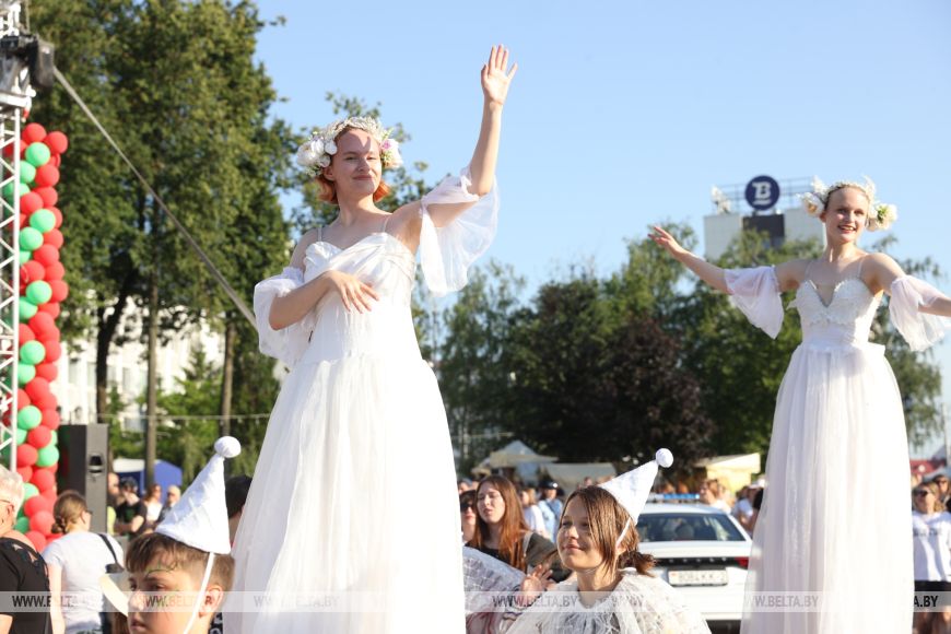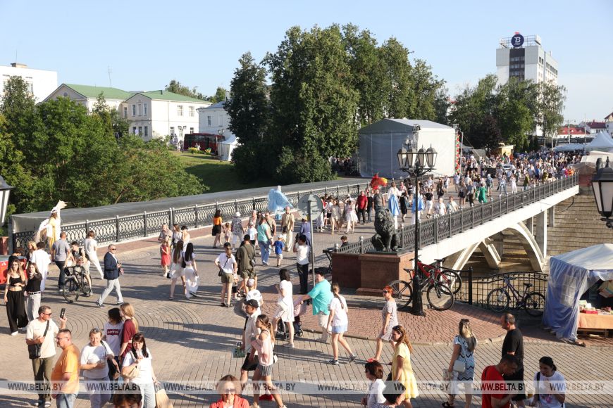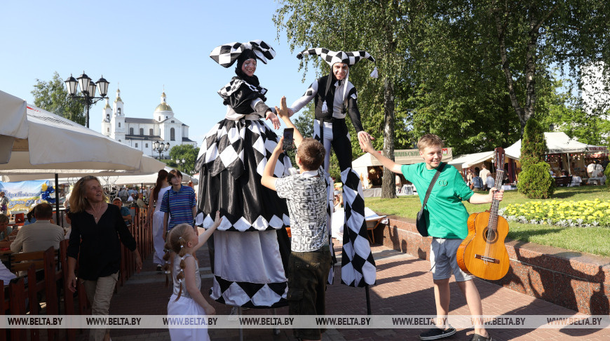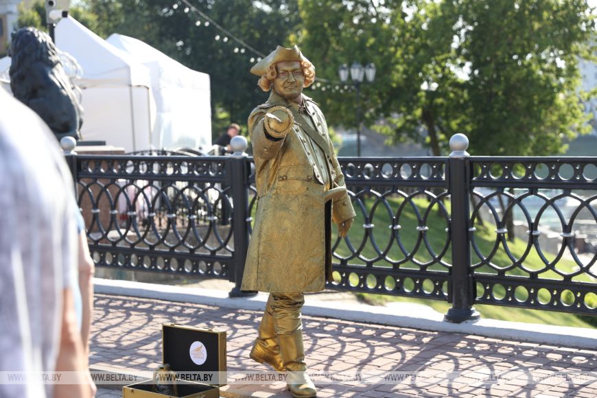 10 июля, Витебск /Корр. БЕЛТА/. На Международном фестивале искусств "Славянский базар в Витебске" стартовал 11-й фест уличного искусства "На семи ветрах". Артисты представили программы на пешеходных улицах города.-0-Фото Надежды Костецкой
