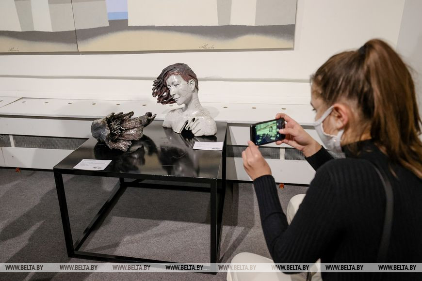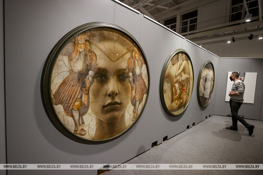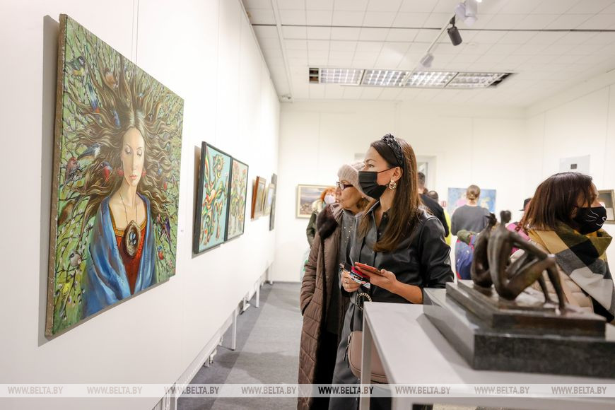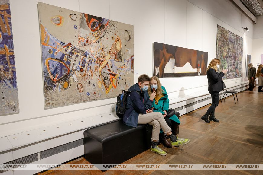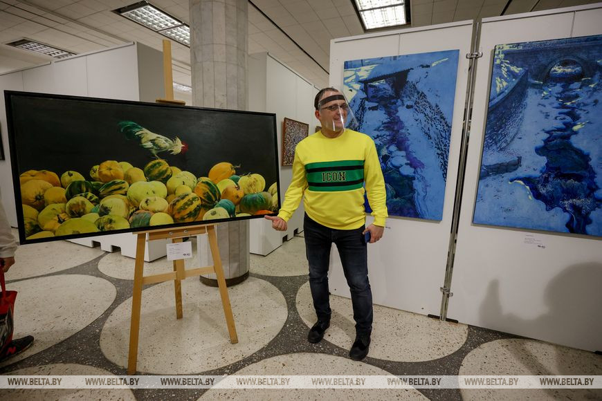 19 ноября, Минск /Корр. БЕЛТА/. Международный фестиваль искусств "Арт-Минск-2020" открылся в Республиканской художественной галерее Белорусского союза художников (Дворец искусства) в столице. "Арт-Минск" - это совместный проект Центра изобразительного и медиаискусства "Новая культурная инициатива", Белорусского союза художников, Дворца искусства при поддержке ОАО "Газпром трансгаз Беларусь".-0-