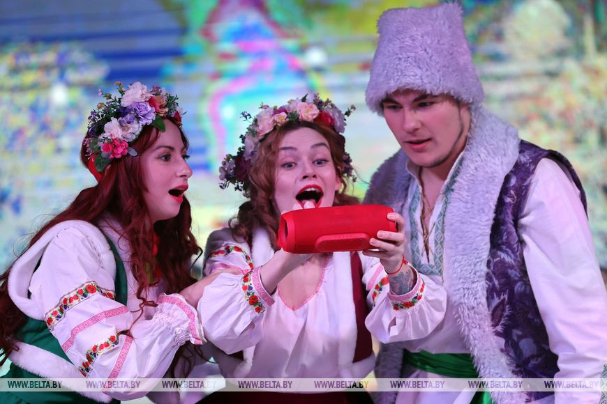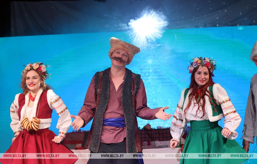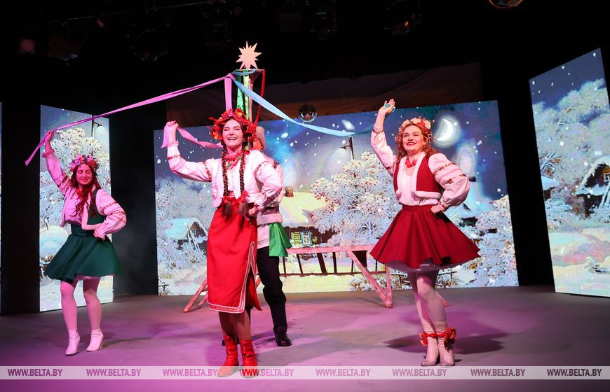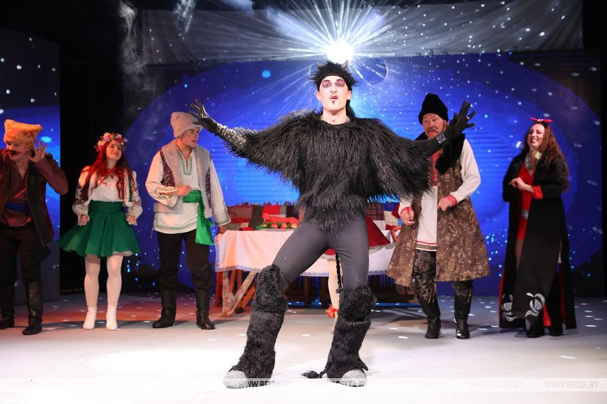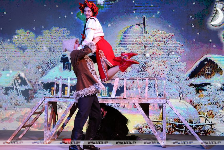 25 декабря, Гомель /Корр. БЕЛТА/. Новогодний мюзикл для взрослых "Ночь перед Рождеством" по мотивам повести Николая Гоголя из книги "Вечера на хуторе близ Диканьки" показал Гомельский городской молодежный театр и ООО "ПроШоу Технологии". Одно из самых известных произведений Гоголя рассказывает о приключениях кузнеца Вакулы, который из-за любви связался с нечистой силой. Режиссер постановки - Валерия Лагуто, балетмейстер - Варвара Каменская, техническое обеспечение проекта - ООО "ПроШоу Технологии".-0-