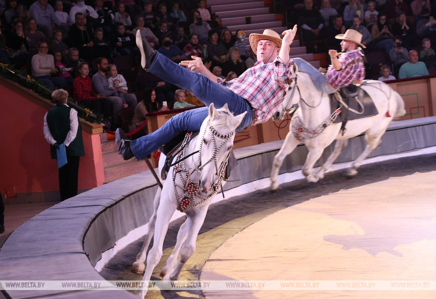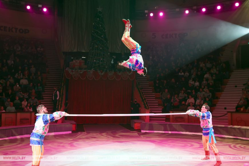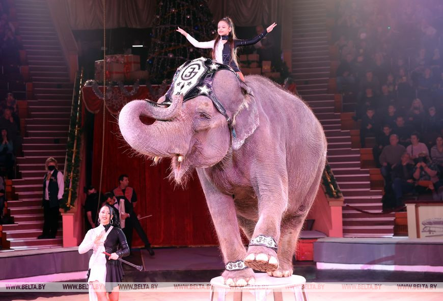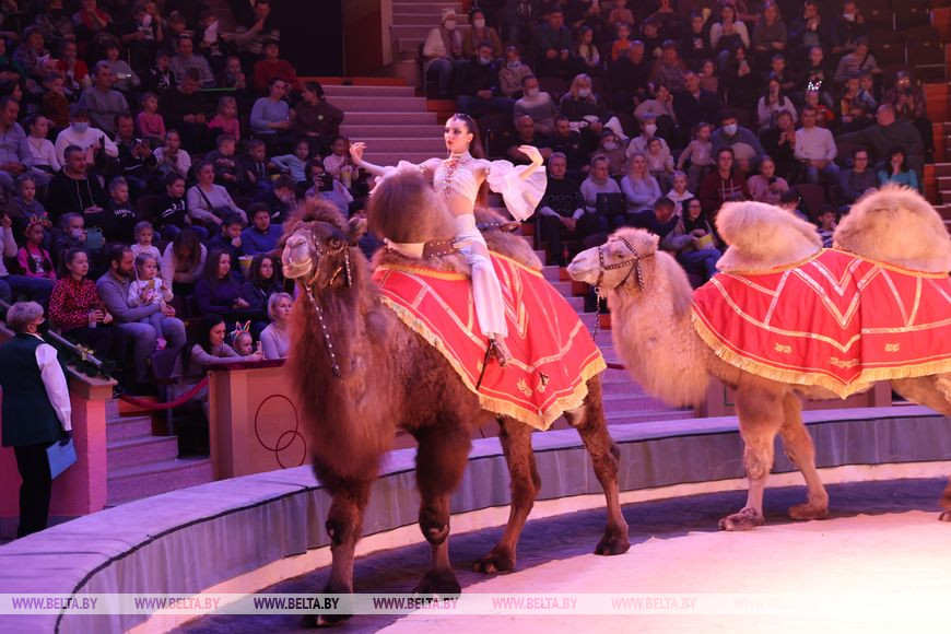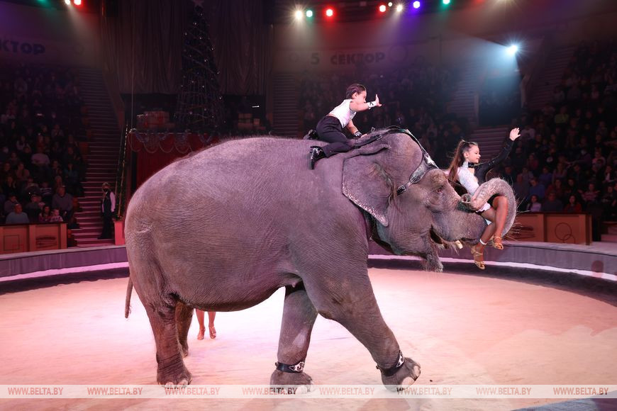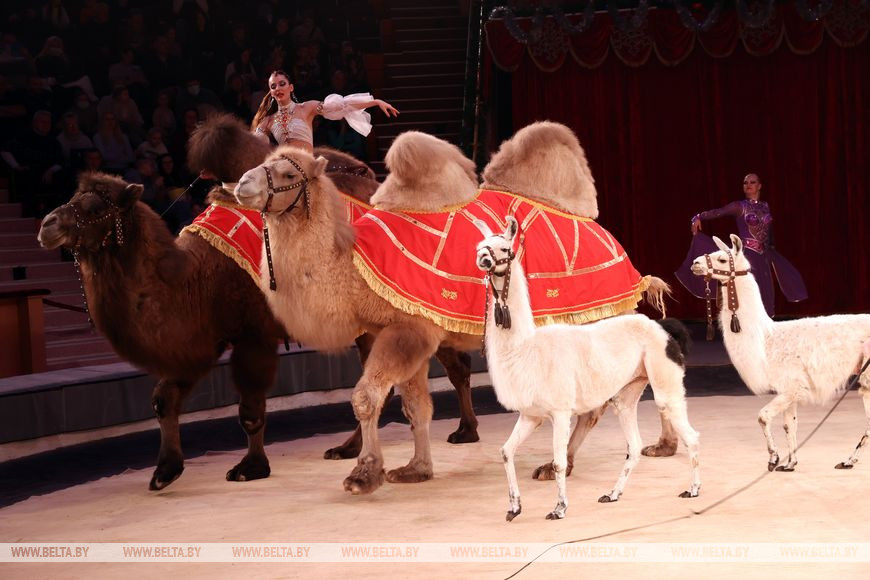 18 декабря, Гомель /Корр. БЕЛТА/. Новая программа "Новогодние дифирамбы, или 100 минут вокруг смеха" стартовала 18 декабря в гомельском государственном цирке. Номера с участием слонов, верблюдов, лам и гусей представили артисты цирка из России.-0-