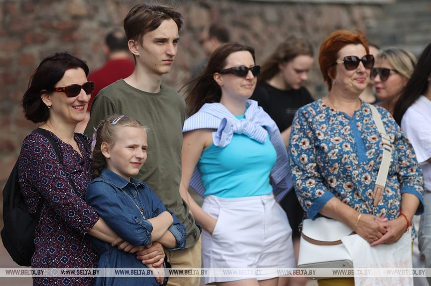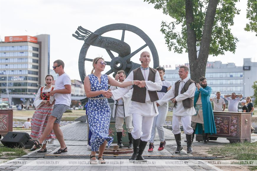 15 июля, Минск /Корр. БЕЛТА/. В рамках еженедельных мероприятий музыкально-туристического сезона Белорусский государственный академический театр юного зрителя представил интерактивную программу "Беларускія вадэвілі". На площадке возле набережной Свислочи в Троицком предместье зрители увидели комедийный спектакль в двух действиях о неудачливых женихах, который в стиле водевиля, конечно же, закончился счастливым концом.-0-