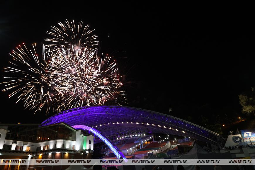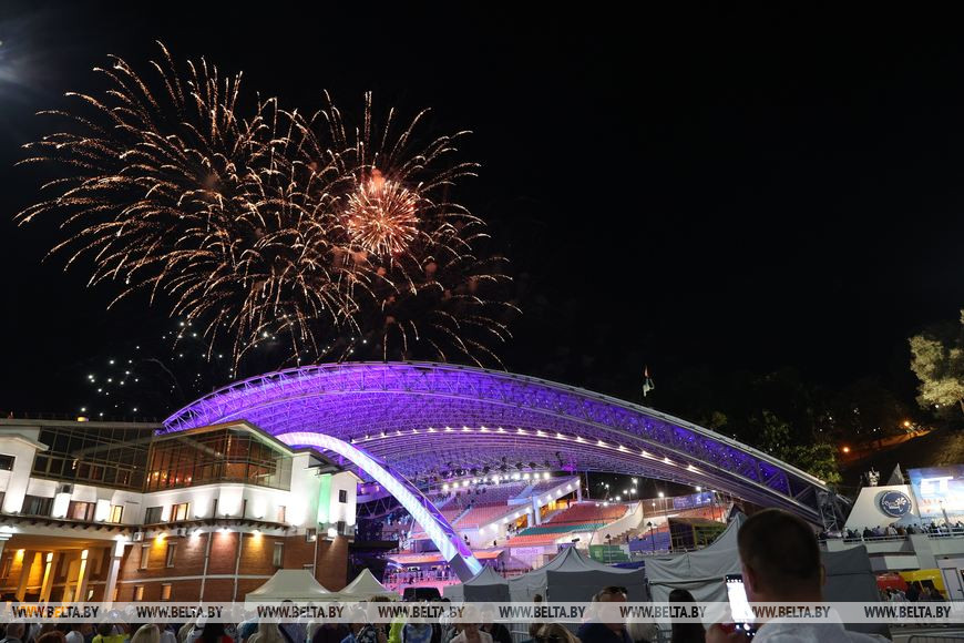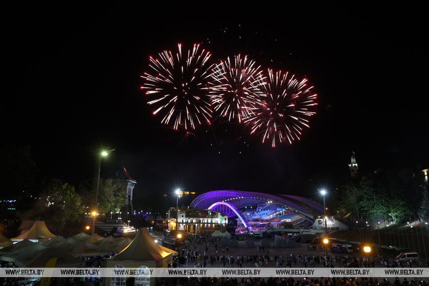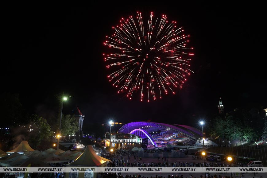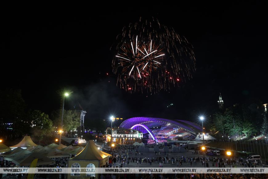 14 июля, Витебск /Корр. БЕЛТА/. Праздничным фейерверк-шоу завершилась торжественная церемония открытия "Славянского базара в Витебске".-0-