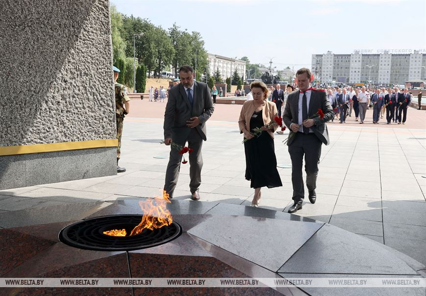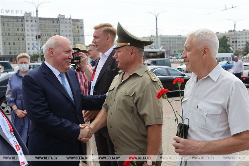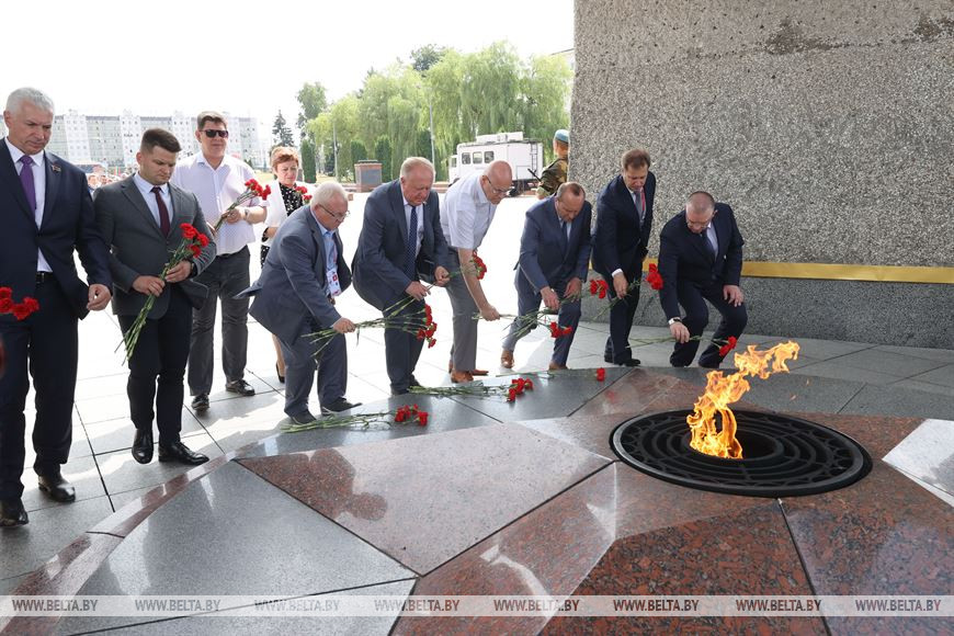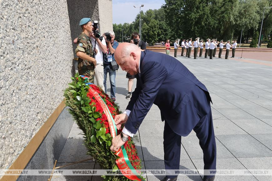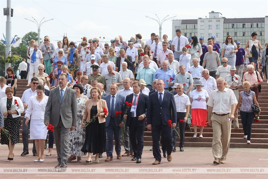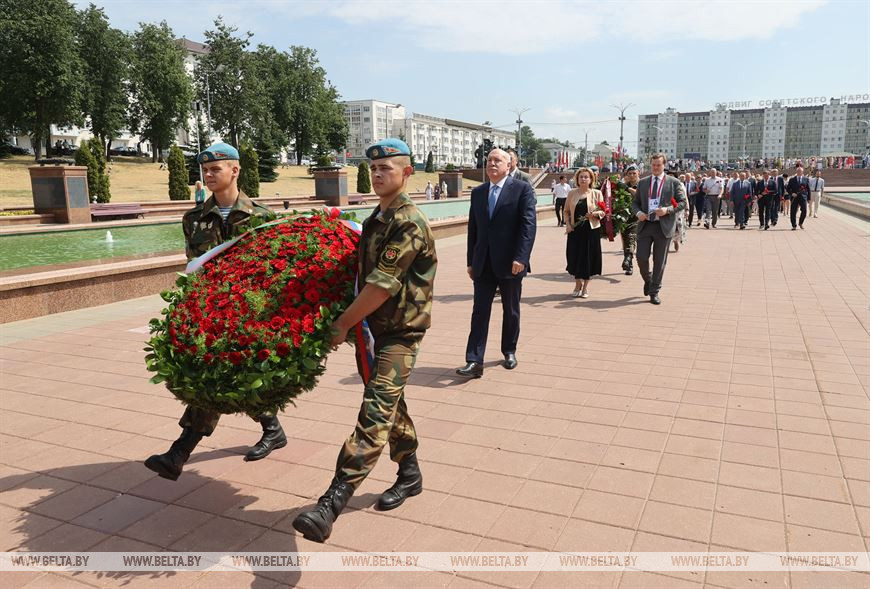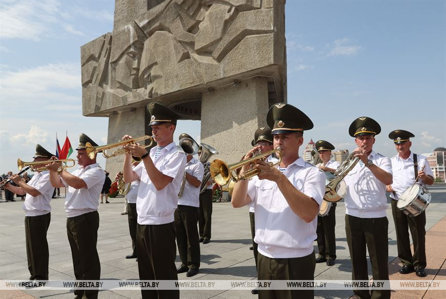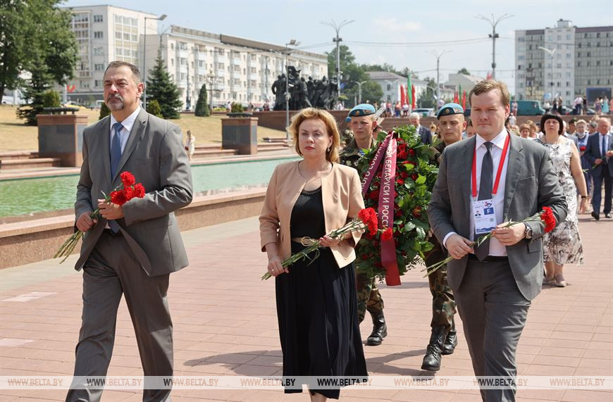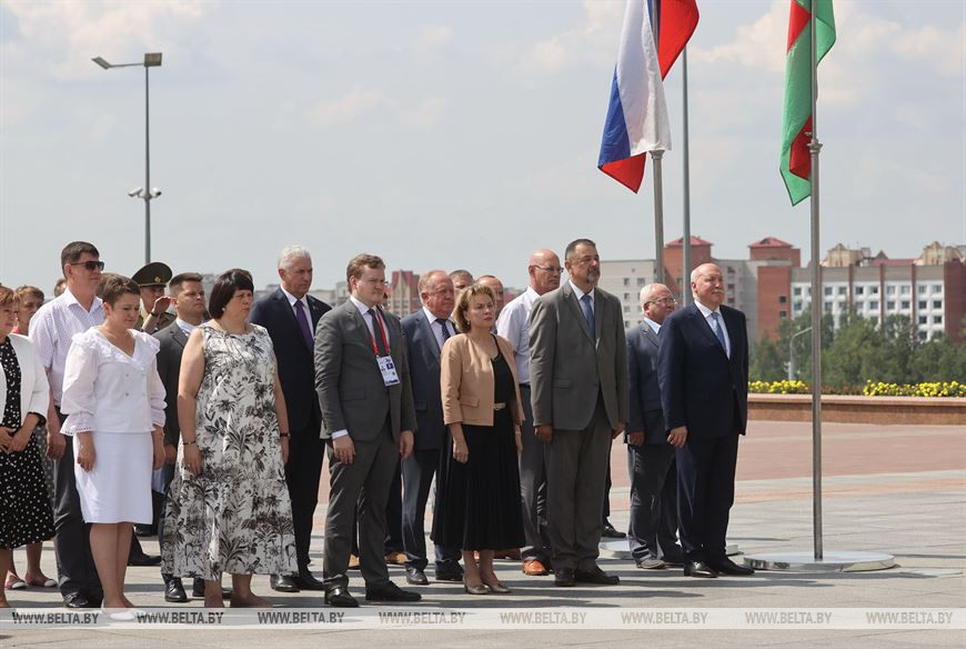 16 июля, Витебск /Корр. БЕЛТА/. День Союзного государства проходит на "Славянском базаре в Витебске". Открылся он церемонией возложения цветов к Вечному огню мемориального комплекса в честь советских воинов-освободителей, ветеранов и подпольщиков Витебщины. В ней приняли участие государственный секретарь Союзного государства Дмитрий Мезенцев, представители Постоянного комитета Союзного государства, Парламентского собрания Союза Беларуси и России, общественных организаций, ветераны войны и военной службы, молодежь.-0-