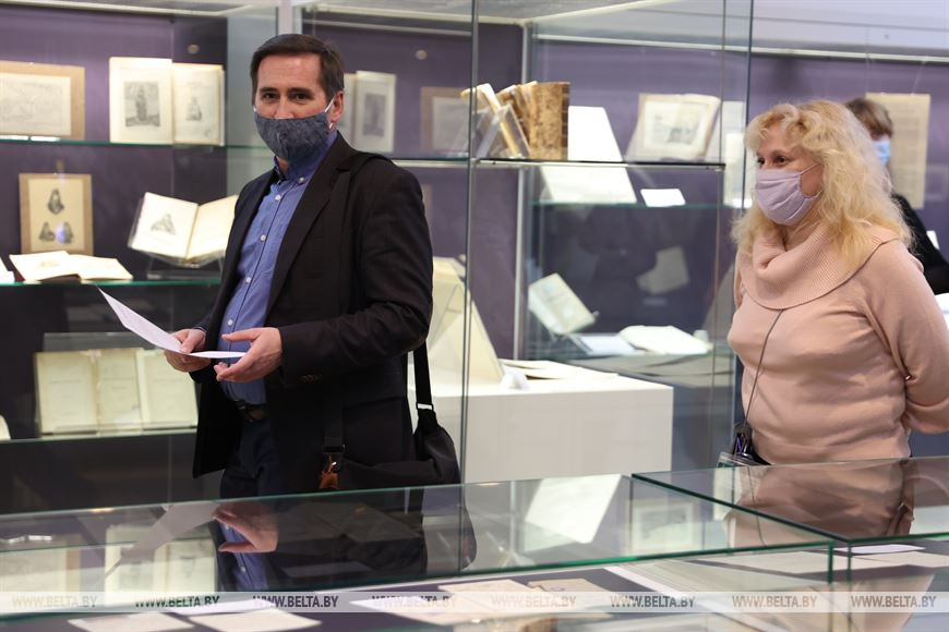 "В Беларусь в конце XVI века пришла принципиально новая техника печати на металле на смену деревянным доскам. Расцвета это искусство достигло во второй половине XVII века. В это время в Беларуси работали знаменитые мастера Александр Тарасевич, Леонтий Тарасевич, Максим Ващенко. Тогда белорусские графики были широко известны, и на них многие начали ориентироваться. Их работы также можно увидеть в нашем Музее книги", - добавил Александр Суша.