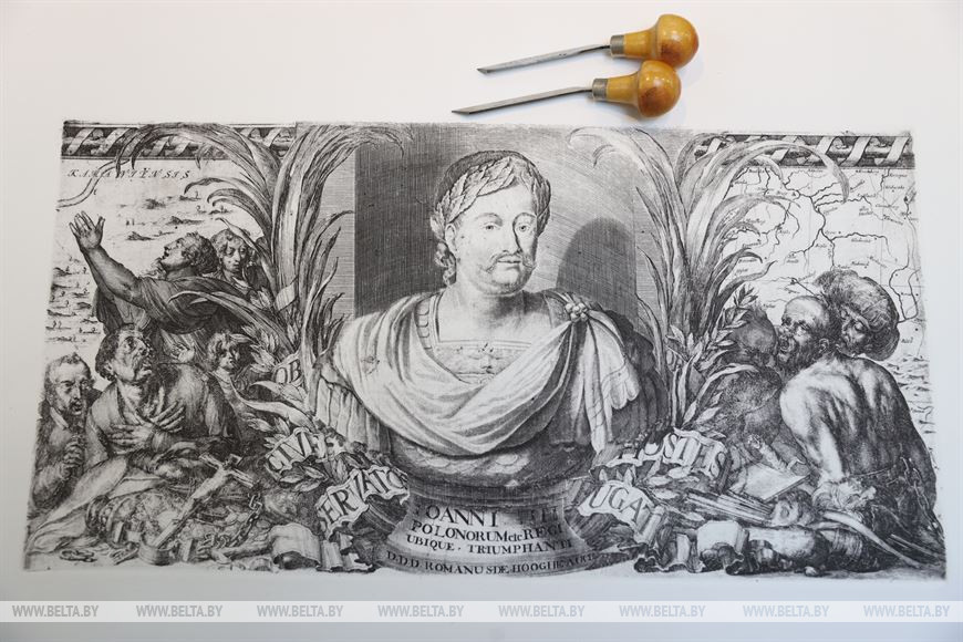 Кроме того, воссозданную на основе доски по старинной технологии гравюру с портретом короля и великого князя Яна III Собеского Олег Судленков передал на хранение в фонд Национальной библиотеки.