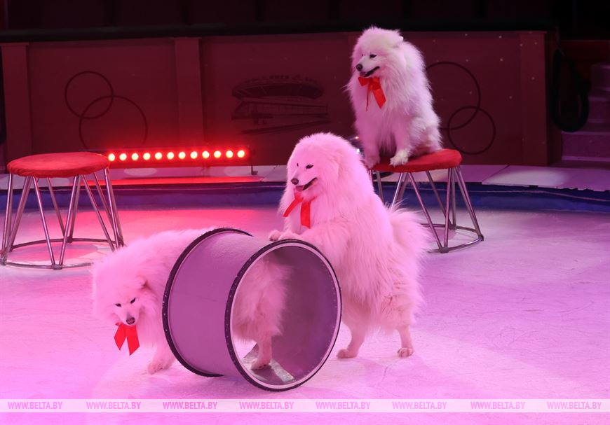11 марта, Гомель /Корр. БЕЛТА/. В Гомельском государственном цирке представили новую увлекательную программу "Цирк на льду "Айсберг". Авторский проект на льду включает световые, лазерные спецэффекты и 3D-мэппинг. В программе большое количество жанров, запоминающиеся выступления, опасные трюки и единственный в мире аттракцион дрессированных белых медведей.-0-