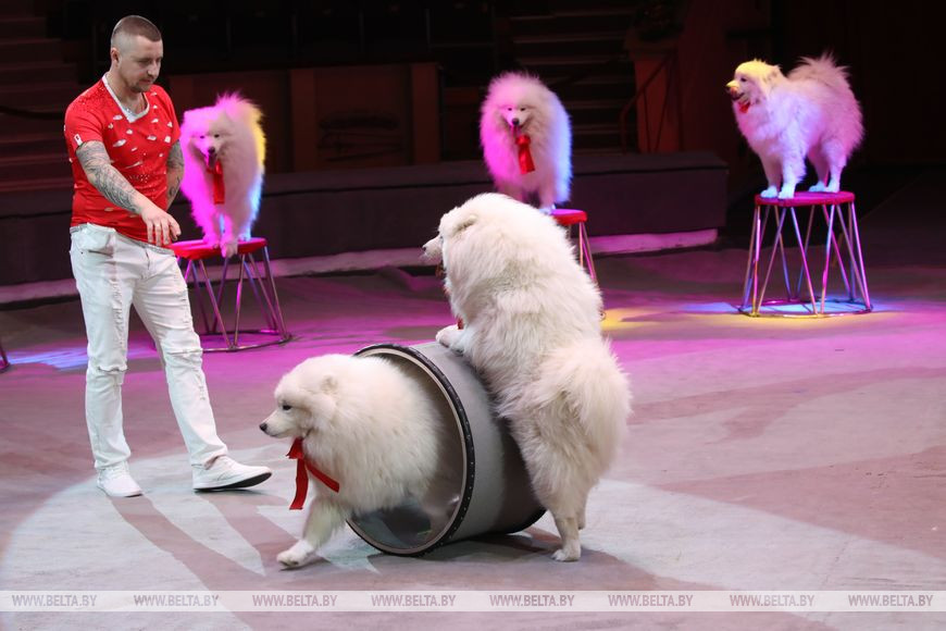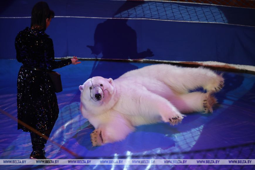 19 декабря, Минск /Корр. БЕЛТА/. В Гомельском цирке 19 декабря состоялся премьерный показ новой программы "Белые медведи в новогоднем цирке". Гостей развлекали не только белоснежные мишки, но еще и забавные хорьки, а также сообразительные собачки. Не менее интересными стали и выступления акробатов. В преддверии новогодних праздников не обошлось также без Деда Мороза и Снегурочки.-0-