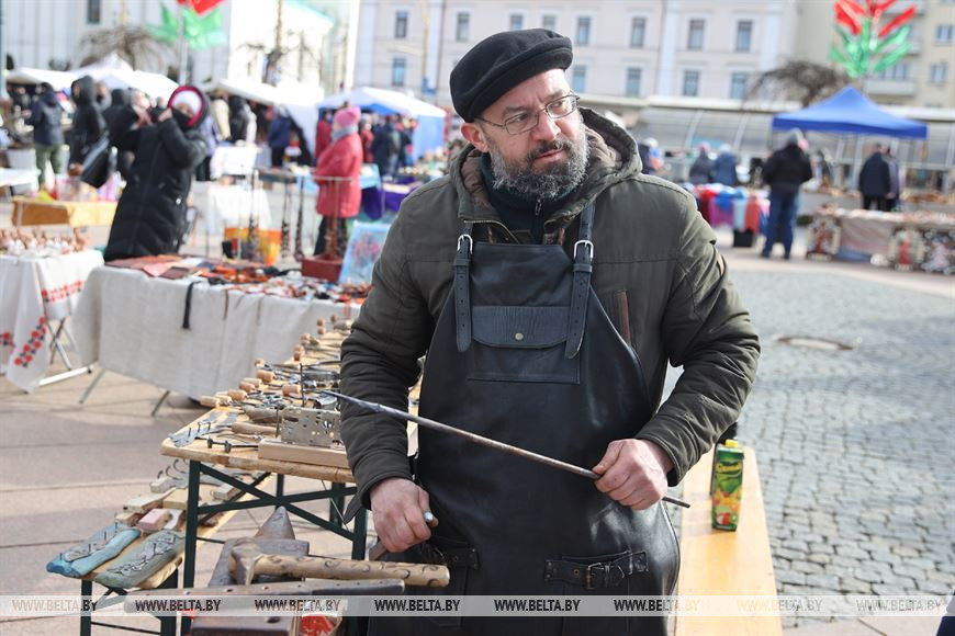 6 марта, Гродно /Корр. БЕЛТА/. Традиционная ярмарка ремесленников "Казюки" в Гродно прошла 6 марта. Мастера со всей Беларуси представили изделия ручной работы из глины, кожи, дерева, металла, соломки. Ярмарка, организованная Гродненским горисполкомом, давно стала одним из самых значимых событий в культурной жизни города. Она проводится ежегодно в память о святом Казимире - покровителе молодежи, мастеров и ремесленников. -0-