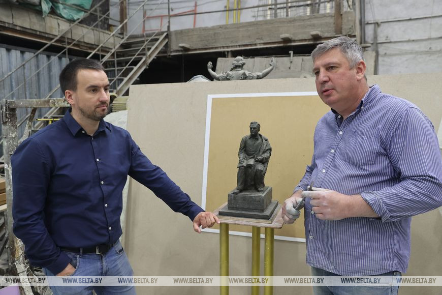 27 мая, Минск /Корр. БЕЛТА/. В скульптурном комбинате ООО "Белорусский союз художников" начались работы по созданию памятника Ивану Шамякину. Писатель Иван Шамякин, уроженец д.Корма Добрушского района, создал около 130 книг, многие из которых стали классикой и легли в основу сценариев для кино и театральных постановок. Для популяризации и сохранения памяти о его жизни и творчестве в городском сквере Добруша решением райисполкома будет установлен памятник знаменитому земляку. Победителями конкурса эскизных проектов по созданию памятника стали преподаватели Белорусской государственной академии искусств Константин Костюченко и Владимир Пипин. Сейчас в мастерской скульпторы работают над созданием памятника в натуральную величину. Создание памятника из бронзы высотой 2,5 м и на почти однометровом пьедестале - достаточно сложная и кропотливая работа. Работы над изготовлением памятника будут завершены до конца августа, а открытие состоится во время празднования Дня письменности в начале сентября.-0-