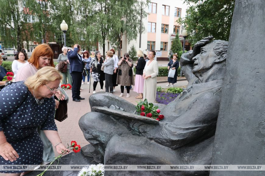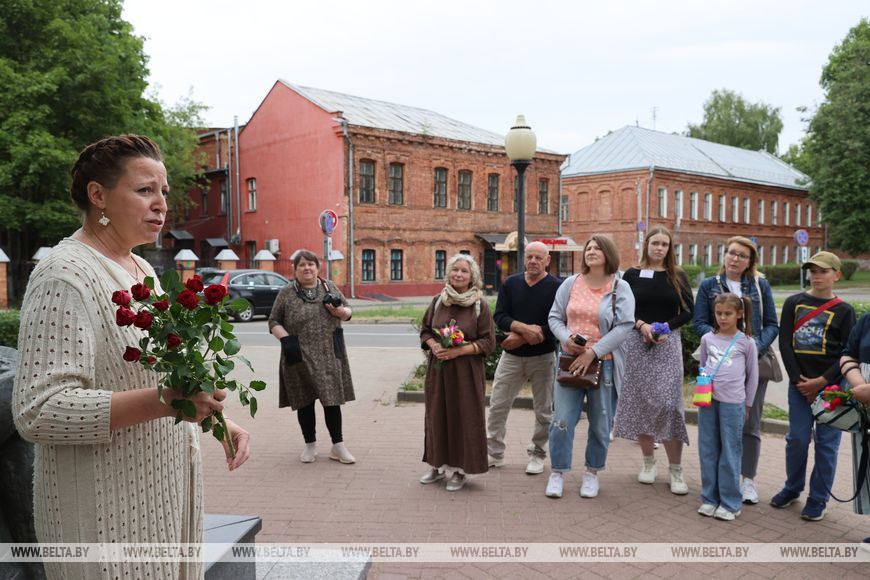 7 июля, Витебск /Корр. БЕЛТА/. Сегодня в Витебске отметили 136-ю годовщину со дня рождения Марка Шагала. Торжества начались с возложения цветов к памятнику на ул.Покровской. Затем во дворе Дома-музея Марка Шагала состоялся театрально-музыкальный интерактив от ансамбля "Наша песня" и любительского театра "Менора".