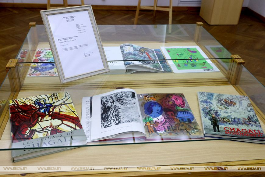 Ранее сегодня днем в Арт-центре Марка Шагала состоялась презентация более 60 редких книжных изданий из личной библиотеки художника из его последнего дома в Сен-Поль-де-Вансе (недалеко от Ниццы во Франции). Книги подарили Витебску внучки мастера Мерет и Белла Мейер. Здесь и оригинальные графические листы Шагала. Как отметили в учреждении, поскольку графика имеет свою специфику (она не может находиться под ультрафиолетовым излучением более трех месяцев в год), то, как и вся остальная коллекция учреждения, эти листы будут включать в экспозиции лишь на время.-0-