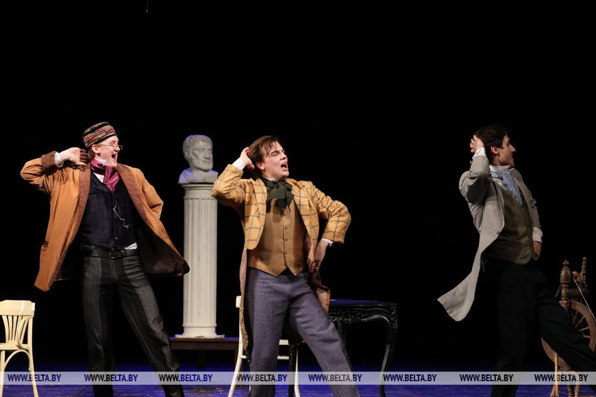 17 июля, Витебск /Корр. БЕЛТА/. Сегодня на сцене Национального академического драмтеатра имени Якуба Коласа в рамках театральных встреч на фестивале "Славянский базар в Витебске" состоялся показ музыкального водевиля "Хлопотун, или Дело мастера боится".-0-