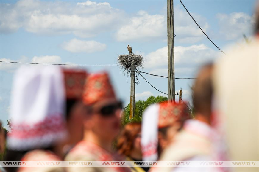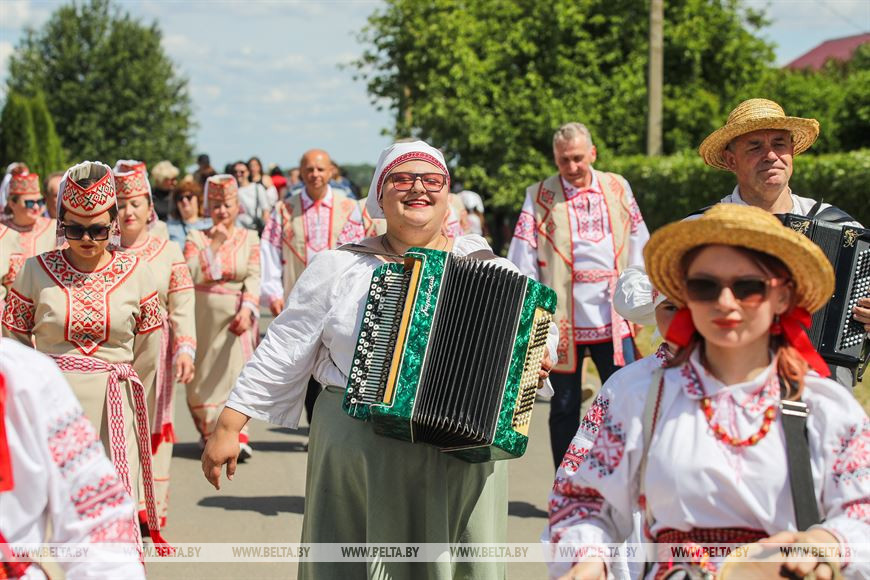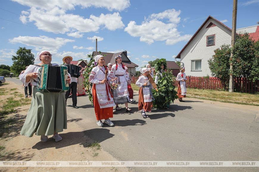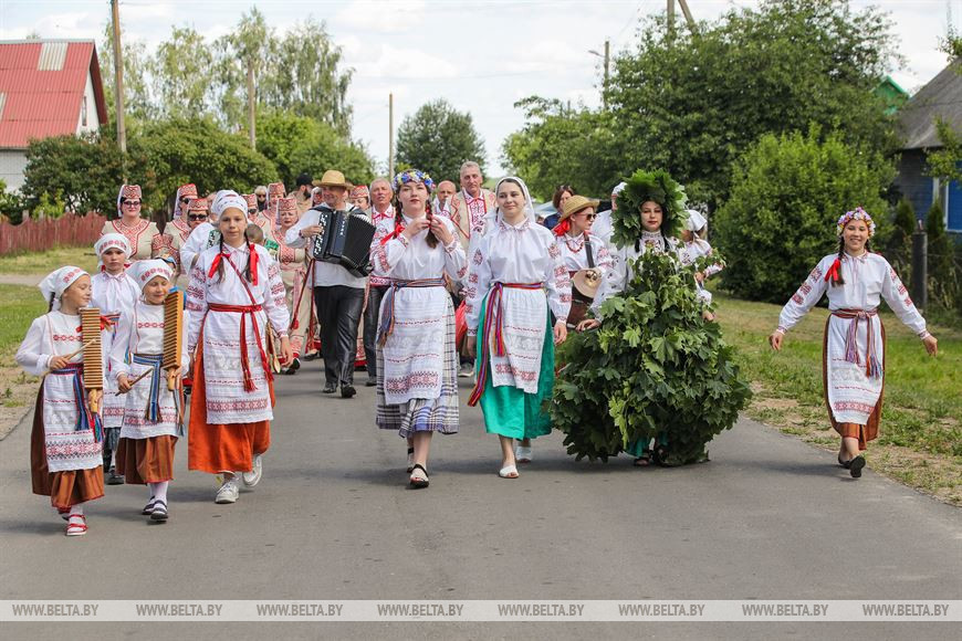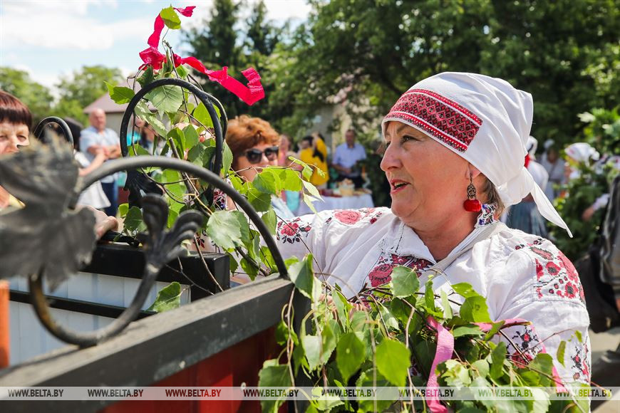 4 июня, Брест /Корр. БЕЛТА/. 4 июня жители деревни Хмелево Жабинковского района празднуют "Сёмуху". Это традиционный праздник, основанный на старинном полесском обряде "Вождение куста". Он отмечается с четверга седьмой недели после поста. Народный обряд является главной частью "Сёмухи" и знаменует прощание с весной и встречу лета. Куст водят по дворам, где с разрешения хозяев на подворье артисты поют и танцуют, после чего радушные хозяева угощают гостей.-0-