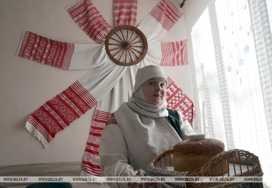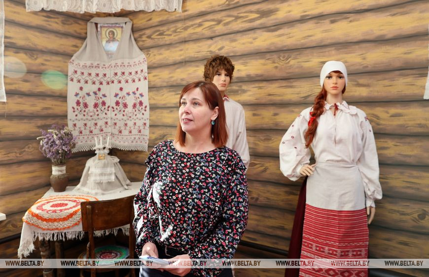 Музей стилизован под белорусскую избу с печью, кутом со святым образом. В центре основной экспозиции - костюмированные образы, представляющие строи разных регионов страны.